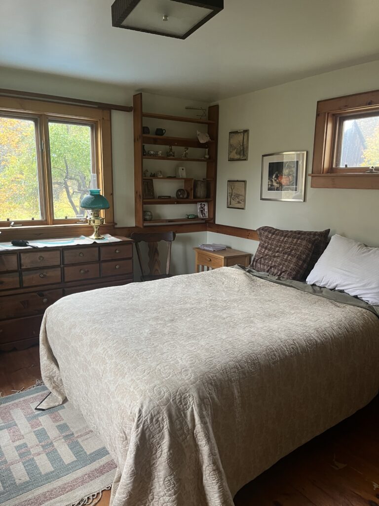 Cavendish: Senior fiber artist and accomplished gardener sharing her beautifully situated home. 2nd floor bedroom can be furnished or unfurnished depending on guest’s preference. Plenty of outdoor storage available. Simple living will require guests to share cleaning, firewood, and yard work (no clothes dryer, nor microwave, nor cable, nor dish washer). Separate studio space available. COVID vaccination required. $500/month. (23197)